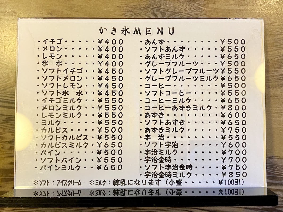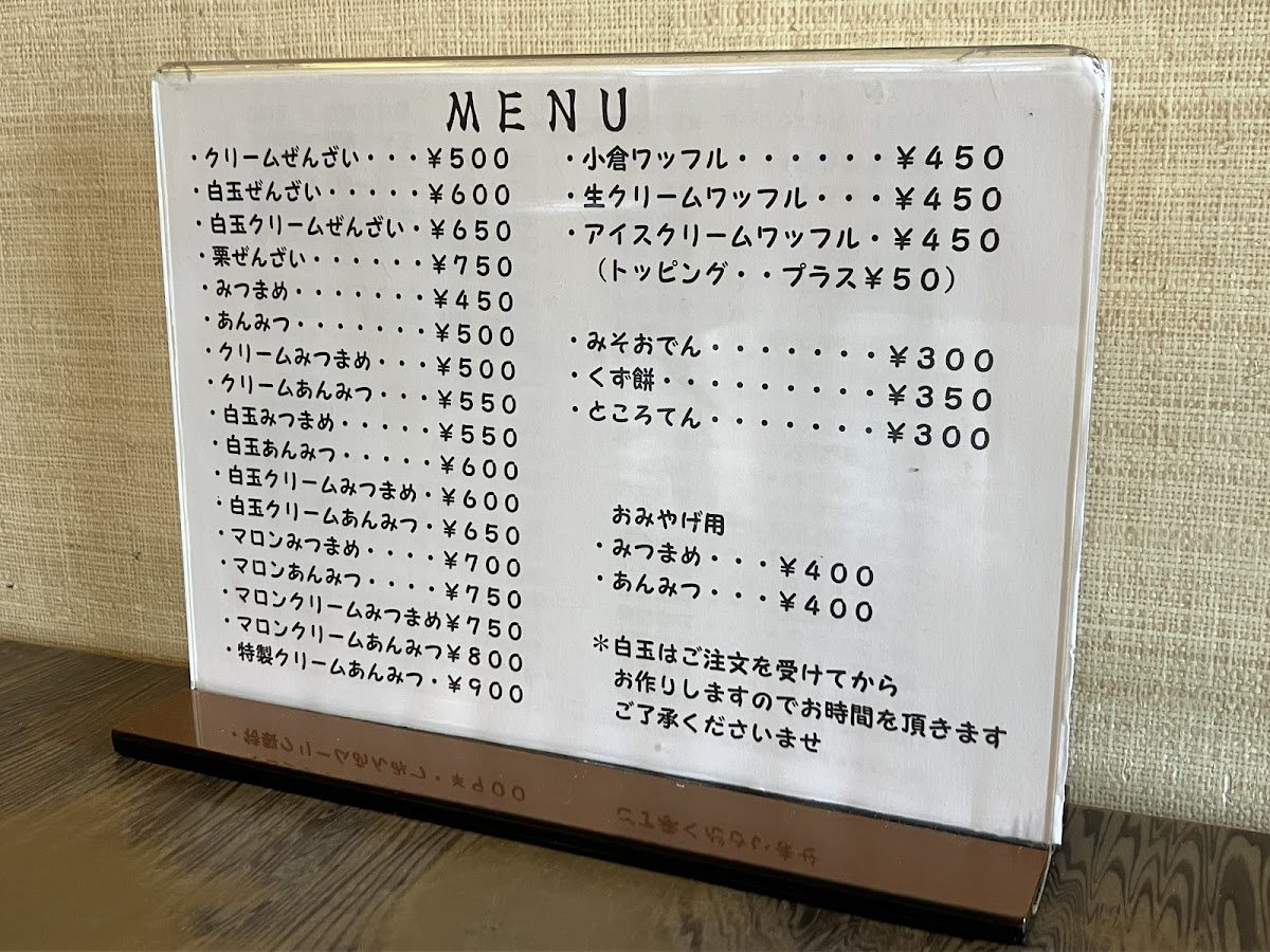 The menu is a delightful homage to classic Japanese desserts, featuring an array of delectable options. Signature dishes include fluffy kakigori (shaved ice) topped with sweetened condensed milk and a variety of toppings such as adzuki beans and soft serve ice cream, all at wallet-friendly prices starting from just 350 yen. Complement your dessert with cream anmitsu, Ujicha cream, or Inaka shiratama, each showcasing the perfect balance of flavors without overwhelming sweetness.